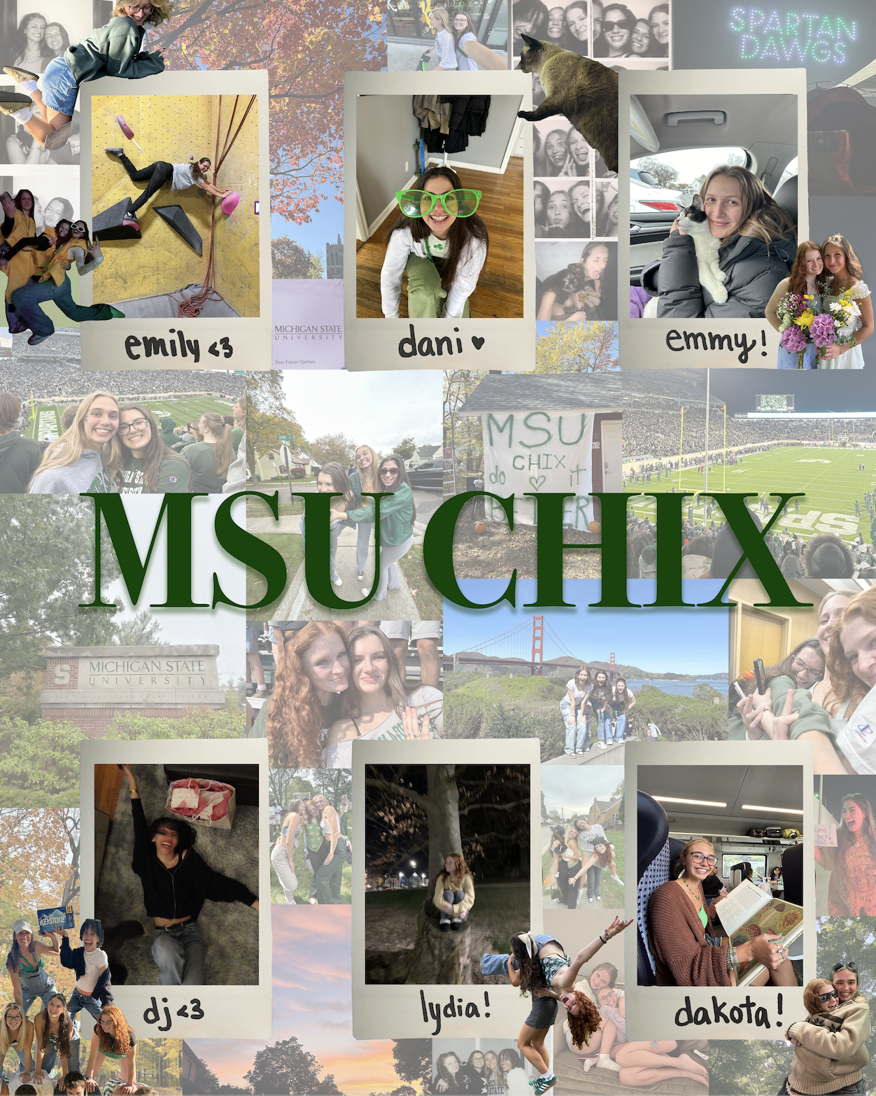 A poster I did for a Journalism class. These are all my roommates and pictures that describe us all; it is now hanging in my kitchen.